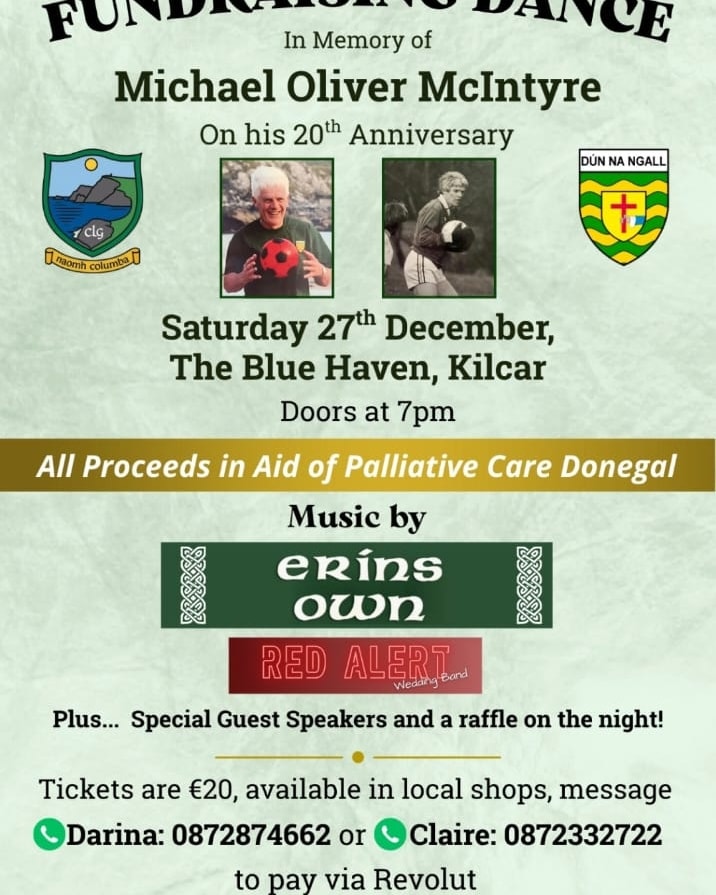 Coffee morning in The Sliabh Liag Visitors Centre on Sunday 7th December at 12 noon, proceeds in aid of Carrick Day Care Centre and Carrick National School.