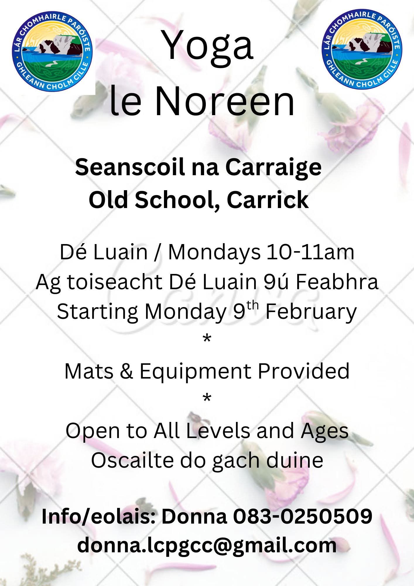 Yoga Monday morning at the Old School Carrick with Noreen Lyons. There are still some places left and new beginners are very welcome to join. Good for the body, and good for the mind! Why not give...