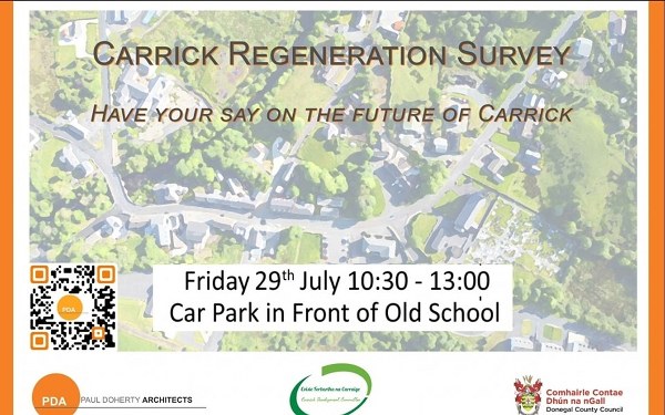 Coiste Forbartha na Carrige, with assistance from Donegal County Council and Paul Doherty Architects in Donegal Town, are in the process of preparing a plan for the regeneration of Carrick and the surrounding area. At this early stage a key part of the process is getting the thoughts, needs and opinions of local community members and visitors.