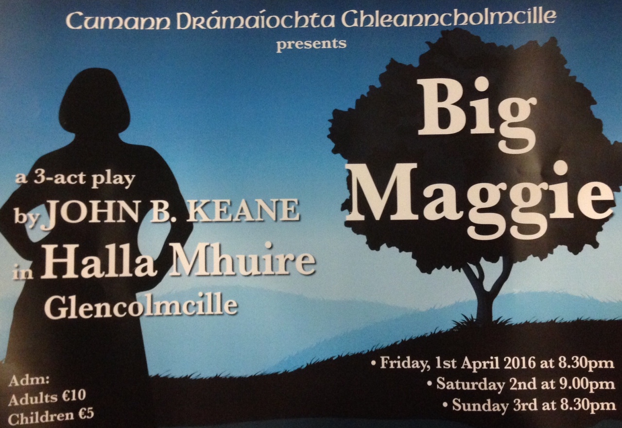 Cumann Drámaíochta Ghleanncholmcille presents "Big Maggie" by John B Keane in Halla Mhuire on Friday 1st, Saturday 2nd and Sunday 3rd April.