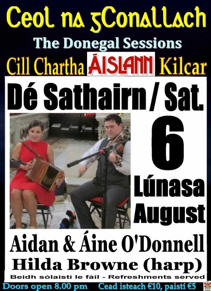 This Saturdays Ceol na gConallach concert in Aislann Chill Chartha features Aidan and Áine O'Donnell with Hilda Browne on Harp.