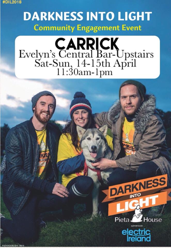 Don’t miss another chance this weekend to get registered in Carrick, Donegal! Darkness Into Light takes place Saturday 12th May at 4:15am. No registrations on event day this year, to guarantee a t-shirt please register by 2nd May and it will be posted to your home!