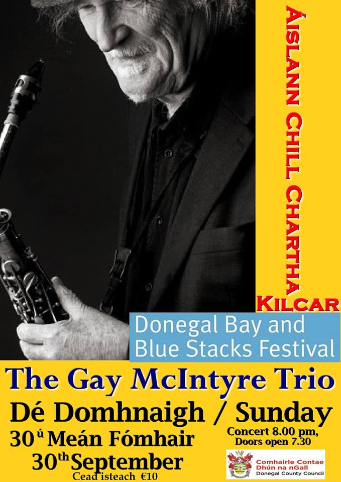 As part of this year’s Donegal Bay and Blue Stacks Festival the Gay McIntyre Trio play a concert in Áislann Chill Chartha (Kilcar) on Sunday, 30th September, commencing at 8.00 pm. Gay McIntyre has long been regarded and one of Europe’s finest jazz musicians and the group also includes another legend of the Irish music scene – John Trotter. Doors open 7.30.