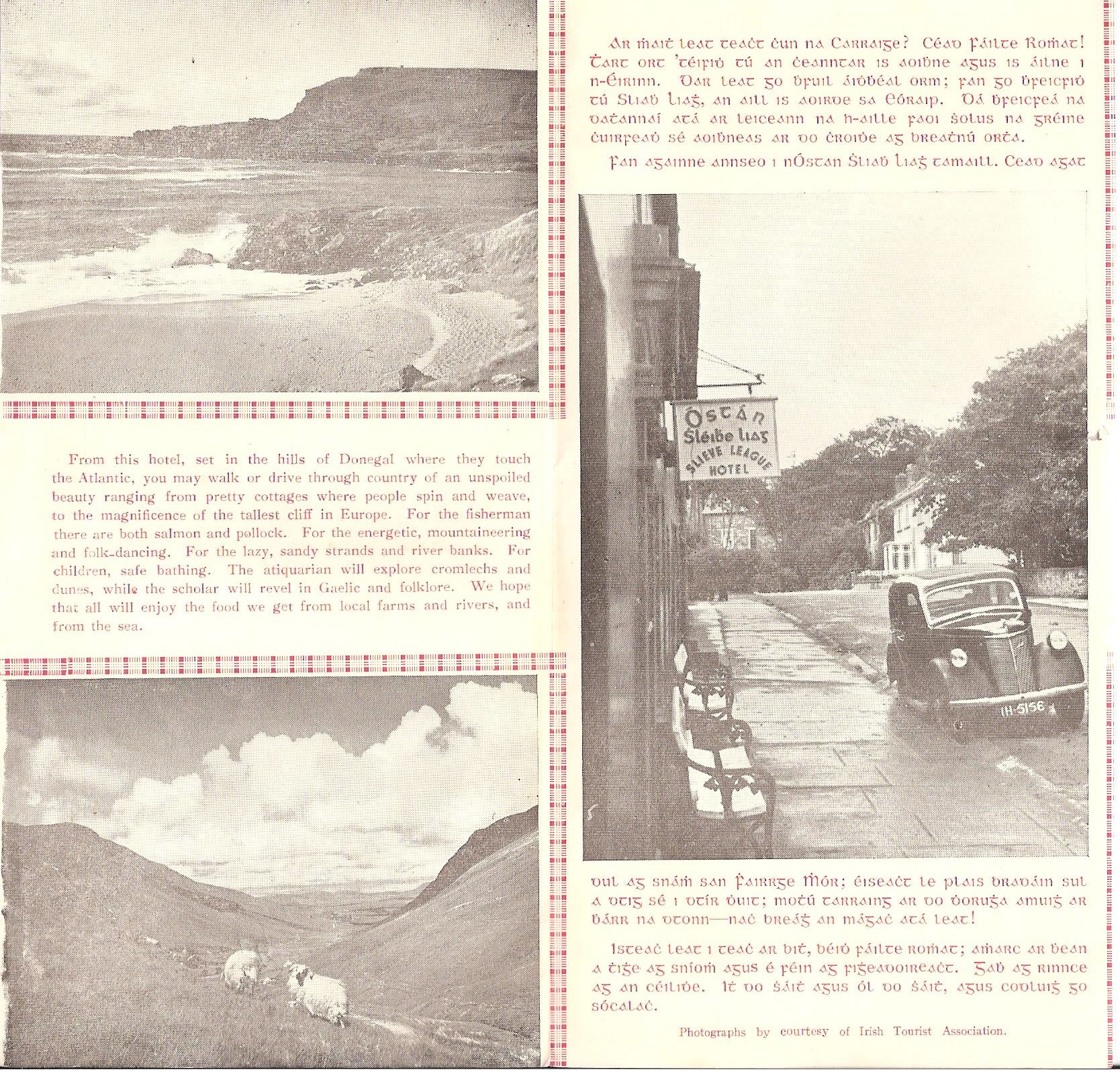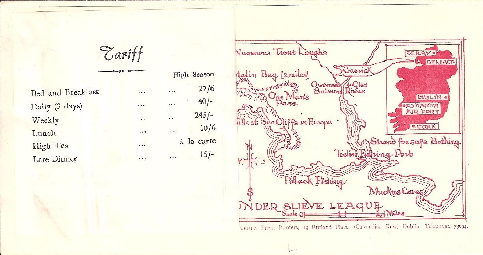 Here is a brochure from the Sliabh Liag Hotel in Carrick from the 1940's or early 1950's it was ran by the late John and Theresa Maloney and thanks to the Maloney family for sharing this, if anyone has any other old items from the past they would like to share on here please give me a call on 086-9969256 all documents will be returned just as they were received.